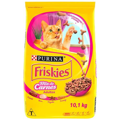 Purina Friskies Mix de Carnes combina ingredientes selecionados e proporciona pele e pelos saudáveis graças aos níveis adequados de zinco e ácidos graxos essenciais. Visão clara e saudável devido à adição de vitamina A e taurina.