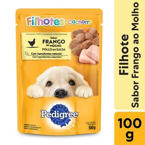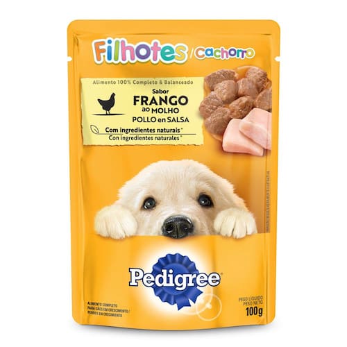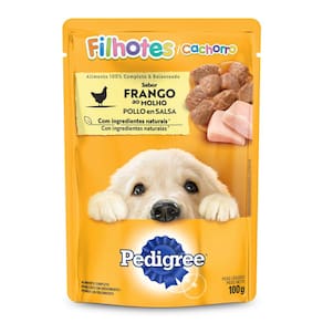 Ração Úmida para Cachorro Pedigree Filhote Sabor Frango ao Molho em Sachê 100g PEDIGREE® Sachê é feito com deliciosos pedaços de frango cozidos a vapor que proporcionam aos cães todo o sabor que eles adoram. É uma refeição completa e balanceada para ser servida todos os dias. Também possui balanço ideal de fibras, que proporciona fezes mais firmes e fáceis de limpar.