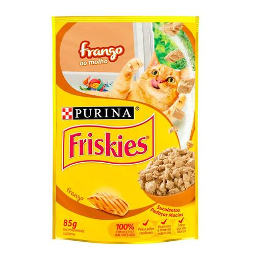 Ração Úmida para Gatos Friskies Adulto Sabor Frango ao Molho em Sachê 85g FRISKIES® Frango ao molho é um alimento úmido completo e balanceado destinado a gatos adultos de atividade normal. Pele e pelos saudáveis graças aos níveis adequados de zinco e ácidos graxos essenciais. Visão clara e saudável devido à adição de vitamina A e taurina. Formulado com vitaminas e minerais que auxiliam nas defesas naturais. Músculos fortes e saudáveis devido à presença de fontes de proteínas de alta qualidade.