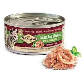 Carnilove Can Cat Chicken, Duck & Pheasant é uma ração úmida premium, formulada especialmente para gatos. Com uma combinação deliciosa de frango, pato e faisão, este produto oferece uma nutrição equilibrada e saborosa, atendendo às necessidades específicas dos felinos.