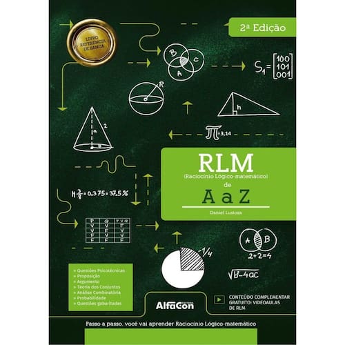 Título Do Livro: RACIOCÍNIO LÓGICO-MATEMÁTICO - RLM DE A A Z - 2ª EDIÇÃO Autor: Daniel Lustosa Idioma: Português Editora Do Livro: AlfaCon Edição Do Livro: 1 Capa Do Livro: Mole Com íNdice: Sim Ano De Publicação: 2023 Quantidade De Páginas: 340 Altura: 16 cm Largura: 23 cm Peso: 0.4 kg Material Da Capa Do Livro: Outros Gênero Do Livro: Juvenil Tipo De Narração: Conto Idade Mínima Recomendada: 18 anos Data De Publicação: 01-09-2023