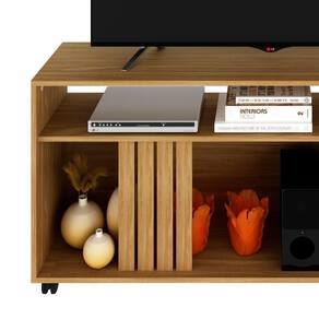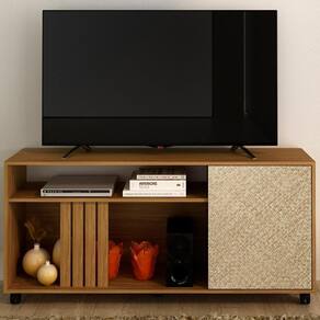 Rack Para PR1481. Com estilo para você compor sua sala, deixando sua decoração ainda mais elegante. Possui estrutura e suporte em MDP de 15mm, acabamento em pintura Uv (Semi Fosco). Equipado com 01 porta com dobradiças metálicas, possui detalhe decorativo em ripado e duas prateleiras para itens decorativos ou aparelhos eletrônicos, frente da porta com acabamento em impressão na cor Palha Texturizada, proporcionando um visual moderno e elegante ao ambiente, ideal para TVs de até 42 polegadas, acompanha rodízios para facilitar a movimentação e a limpeza. Desenvolvido 100% ecologicamente correto, o que garante a resistência e vitalidade do produto. Este móvel chegará na sua casa separado em 01 volume.