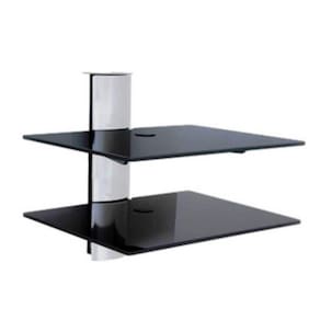 Coluna em aço com pintura eletrostática, Painel de Fechamento em aço inox ou com pintura. Prateleiras com suporte em aço e vidro temperado de 8 mm A passagem de cabos de todos os equipamentos é simplificada. Evitam-se os fio soltos. Rapidez na instalação. Não tem serviços de alvenaria. A coluna suspensa na parede deixa o piso livre para limpeza. Prateleiras opcionais organizam os equipamentos do Home Theater.