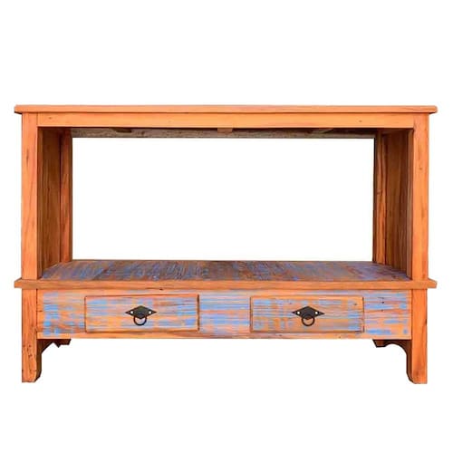 O Rack Aparador Santana une estilo rústico e elegância, ideal para salas, halls ou corredores. Com 120cm de largura, conta com 2 gavetas e prateleiras que otimizam o espaço com charme e praticidade. Produzido 100% em madeira maciça com acabamento em pátina e verniz especial, oferece durabilidade e acabamento refinado.