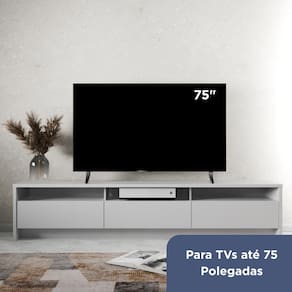 Compatível com TVs de até 75 Tampo resistente e espaçoso, ideal para sua TV e itens decorativos.