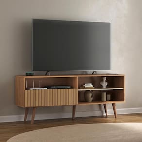 Este móvel combina estilo e funcionalidade, proporcionando um espaço ideal para sua TV e outros dispositivos eletrônicos.