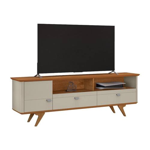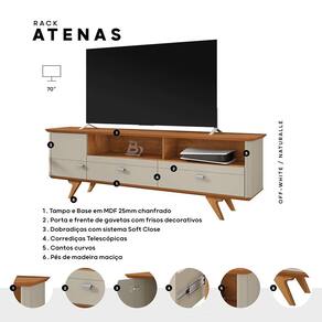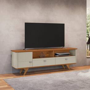Rack Atenas para TV até 70 Polegadas Pés em Madeira Maciça - Off White