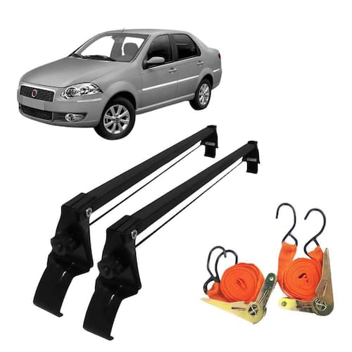 Rack bagageiro teto fiat siena 99 até 16 + 2 cintas catraca A vhip desenvolveu esse rack sob rigoroso controle de qualidade, cujo processo industrial, segue os padrões de segurança, com acompanhamento e supervisão técnica contínua, visando proporcionar ao consumidor, uma excelente alternativa no transporte de bagagens ou cargas. Especificação técnica: Projetado e desenvolvido para suportar até 45 kg de peso máximo, desde que distribuído de forma uniforme e equilibrada; Manual de instruções, para orientar a montagem, sua capacidade de transporte, regras de utilização e outros informes; Não amassa e nem risca o veículo; Cor preto; Fabricado em aço; Não exige furações; Fácil instalação; Ótimo acabamento; Excelente resistência. Ficha técnica: Fabricante: vhip; Material: ferro tubular / aço; Capacidade de carga do rack: 45kg distribuídos Cor: preto. Conteúdo da embalagem: 2 racks dianteiro + traseiro ; Kit instalação; 2 cintas de amarração com catraca; Manual.