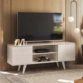 O Rack Bancada Lisboa conta com painéis em MDP de 15mm e acabamento em pintura UV, garantindo durabilidade e um toque de sofisticação. Suas portas de correr e pés em poliestireno trazem praticidade e elegância. Além disso, é ideal para acomodar TVs de até 55", unindo funcionalidade e design em um só produto.