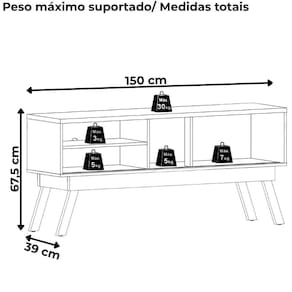 Peso máximo suportado: 50Kg (tampo 30kg, prateleira 3kg e base 17kg distribuídos)