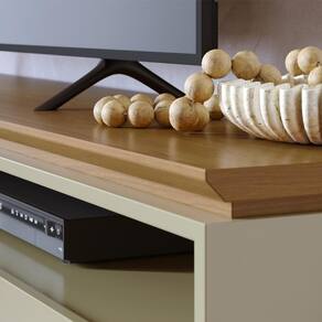 O Rack Bancada Selene combina funcionalidade e estética com gavetas espaçosas, tampo suspenso e nichos abertos para organização.