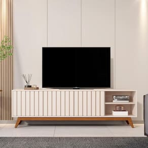 Feita em MDF ripado, com design moderno e pés resistentes, acomoda TVs de até 75?.