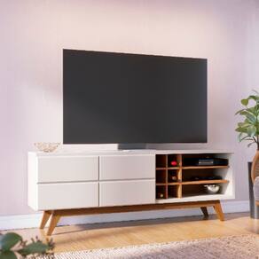 Rack Bancada Ambiente Com Adega 1,80 Off White Matte/Freijo