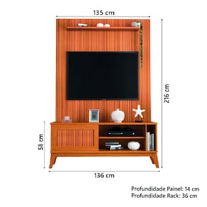 MODELO: Rack Bancada Aruba Com Painel Para TV Até 55 Polegadas 1,35m Egeo Ripado Impressão 3D