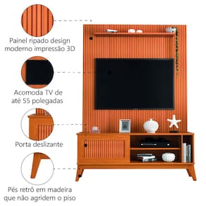 O Conjunto Rack Bancada Aruba com Painel Egeo é a definição de elegância e sofisticação! Conta com espaço para aparelhos eletrônicos, prateleiras, 1 porta deslizante com amplo espaço interno, painel com detalhe ripado em impressão 3D e rack com pés resistentes de madeira. Feito com materiais de qualidade garantindo maior resistência e durabilidade. Acomoda TV de até 55 polegadas.