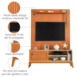 Rack Bancada Aruba Com Painel Para Tv Até 55 Polegadas Egeo Cedro/off White Ripado Impressão 3d Edn Cedro