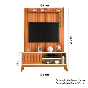 Certifique-se de tudo antes de finalizar a compra, evitando assim futuros desagrados ou imprevistos com a entrega. MEDIDAS PAINEL:: A = 216 cm L = 135 cm P = 14 cm | MEDIDAS PRATELEIRA:: L = 110 cm P = 14 cm | MEDIDAS RACK:: A = 58 cm L = 136 cm P = 36 cm | MEDIDAS DOS PÉS:: A = 22 cm L = 6,5 cm P = 2,5 cm | ACOMODA TV ATÉ:: 55 polegadas | PESO DO PAINEL:: 34 Kg | PESO SUPORTADO PELO RACK:: 30 KG | MODELO:: Rack Bancada Aruba Com Painel Para TV Até 55 Polegadas 1,35m Egeo Ripado Impressão 3D | PESO SUPORTADO PELO PAINEL:: 50 Kg | PESO DO RACK:: 21,4 Kg | COR:: Cedro/Off White | MARCA:: EDN | ACABAMENTO:: Pintura UV | MATERIAL DO PAINEL:: MDP | MATERIAL DO RACK:: MDP/MDF | ESPESSURA DO MATERIAL DA ESTRUTURA:: 12 e 15mm | PORTAS:: 1 | TIPO DE PORTA:: Correr | PRATELEIRAS:: 2 | PÉS:: 4 | MATERIAL DOS PÉS:: MDF | GARANTIA:: 3 meses pelo fabricante | DIFERENCIAL:: Tampo do Rack em MDF com borda laqueada, porta deslizante com acabamento em ripado 3D, prateleira do painel pode ser superior ou inferior (opcional) | ITENS INCLUSOS:: 1 Rack Bancada, 1 Painel, 1 manual de Montagem e 1 Kit de ferragens | INSTRUÇÕES/CUIDADOS:: Para maior durabilidade, recomendável que a limpeza dos móveis seja feita com pano limpo e levemente umedecido em água e sabão neutro. Em seguida, deverá ser passado um pano limpo e seco. Frequentemente comprados juntos | AVISO:: A Esplanada Móveis se responsabiliza pela entrega dos produtos adquiridos até a porta de entrada ou portaria do endereço indicado, se a portaria do condomínio permitir, as entregas são efetuadas no piso térreo e é de responsabilidade do cliente a locomoçã | NICHOS:: 1 | TONALIDADE:: Marrom | PRODUTO:: Rack e Painel | TAMANHO:: Alto Cor: Cedro