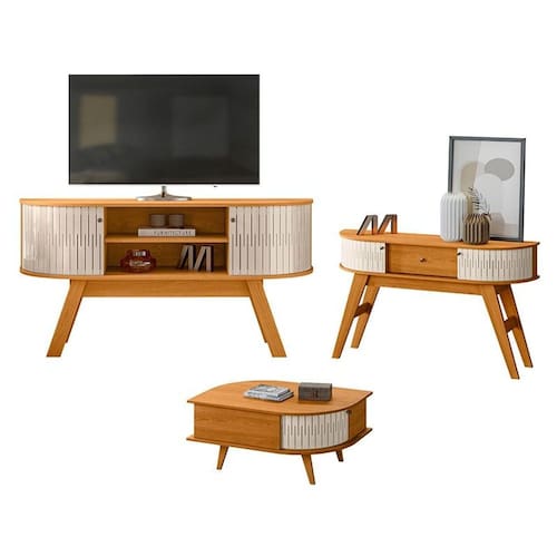 Começou a montar sua sala de estar? Então apresentamos para você este belo conjunto composto pelo Rack Bancada da linha Atlanta, Aparador da linha Estoril e Mesa de Centro da linha Indianápolis, projetados cuidadosamente para oferecer um equilíbrio entre funcionalidade e estética. O rack com suas duas portas flexíveis é ideal para suas necessidades de armazenamento contando com um ótimo espaço interno e uma prateleira para você acomodar seus aparelhos eletrônicos ou itens decorativos. O aparador vem equipado com duas portas flexíveis para guardar diversos itens e uma gaveta telescópica, proporcionando espaço extra. Completando o conjunto, a mesa de centro possui duas portas flexíveis com ótimo espaço para você guardar seus acessórios, enquanto a superfície é ideal para você acomodar decorações. Produzido pela Madetec, é feito em MDP com materiais de alta qualidade garantindo mais durabilidade e prolongando a vida útil dos móveis. Com design moderno é a escolha perfeita para quem busca praticidade e estilo em seu ambiente. Confira e garanta o seu!