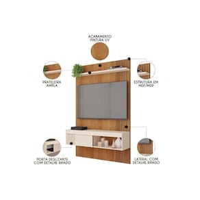 Tipo de Porta: - Portas de Correr Diferenciais das Portas: - Portas Ripadas Quantidade de Portas: - 1 Porta de Correr Tipo de Puxador: - Madeira Material das Prateleiras: - Prateleira Madeirada Quantidade de Prateleiras: - 1 Prateleira Quantidade de nichos: - 1 Nicho Ideal para TVs até (Polegadas): - 45 Polegadas