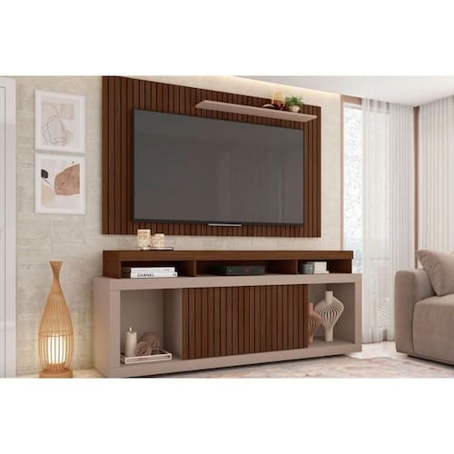 Rack Bancada c/ Painel p/ TV até 60 Pol New Oscar Rodízios 180x174cm Fendi/Havana - Caemmun Marca: Caemmun