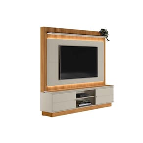 Home p/ TV até 75 Pol Guararapes Ripado c/ 2 Portas 2 Prateleiras c/ Pés e Leds 215x196cm Nature/Off White - Linea Brasil