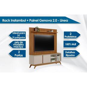Home p/ TV até 75 Pol Istambul/Genova 2 Pta 1 Prat c/ Pés 200x194cm Nature/Off White - Linea Brasil