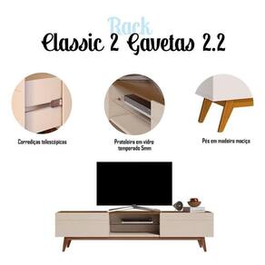 Rack Bancada Classic 2 Gavetas 2.2 Off White Freijó Touch - Imcal