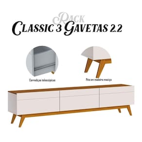 Rack Bancada Classic 3 Gavetas 2.2 Off White Freijó Touch - Imcal