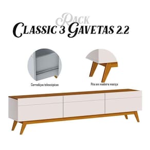 O rack da linha Classic é uma peça elegante e funcional, projetado para complementar qualquer ambiente com estilo. Possui três gavetas espaçosas, oferecendo amplo espaço interno para organizar seus acessórios. As gavetas possuem corrediças telescópicas garantindo um deslizamento mais suave. Os pés em madeira maciça adicionam mais estabilidade ao rack. Produzido pela Imcal, é desenvolvido em MDP/ MDF com materiais de alta qualidade garantindo mais durabilidade e resistência ao longo do tempo. Completando seu design clássico é uma escolha ideal para quem busca praticidade e organização. Confira e garanta o seu!