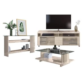 Rack Bancada com Aparador e Mesa de Centro Frizz Cross Calacata Off White Madetec