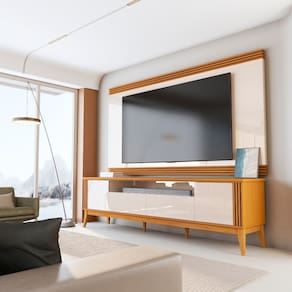 Transforme sua sala com este elegante conjunto de rack bancada Vetro com painel Nex, que combina design moderno e funcionalidade. Seu visual sofisticado é realçado pelos detalhes ripado que dão personalidade e estilo ao ambiente. Produzido em MDF/MDP de alta resistência e acabamento impecável, com pintura UV de alta qualidade, garantindo maior durabilidade e beleza ao móvel. Conta com 2 portas de bater com dobradiças de pressão e 2 gavetas com corrediças telescópicas, que proporcionam abertura suave e armazenamento eficiente. Além disso, possui 1 nicho central, ideal para acomodar eletrônicos, livros ou objetos decorativos. O conjunto é sustentado por 6 pés em madeira maciça, que oferecem estabilidade e um toque natural ao design, harmonizando perfeitamente com diversos estilos de decoração. Perfeito para quem busca praticidade, charme e elegância.