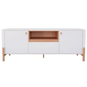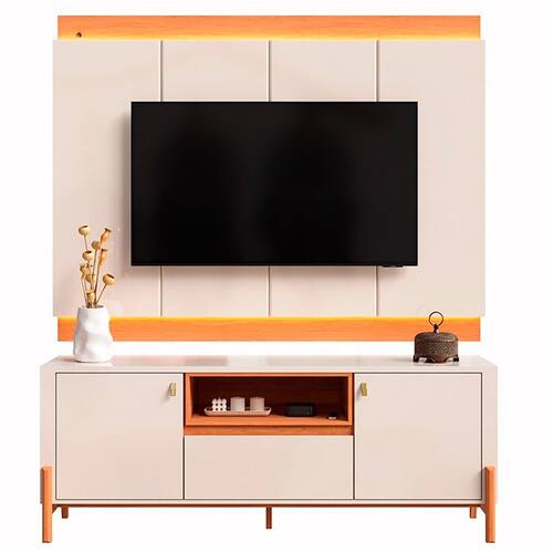 Com capacidade para TVs de até 75 polegadas, o conjunto oferece espaço bem planejado para acomodar aparelhos eletrônicos, acessórios e objetos decorativos, mantendo sua sala organizada e elegante.