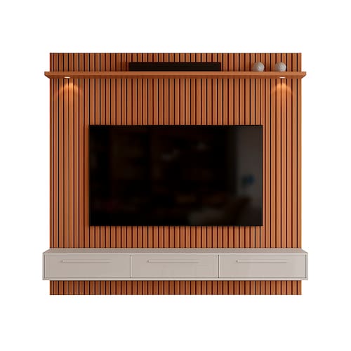 O painel foi desenvolvido para TVs de até 75 polegadas, valorizando o ambiente e trazendo um visual moderno e aconchegante para sua casa. Com design versátil, o conjunto combina praticidade e sofisticação, deixando sua sala ainda mais charmosa.