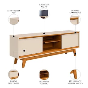 O Rack Bancada de 70 Pol 164cm Gaia M01 Off/Cinamomo, da Mpozenato, combina funcionalidade e sofisticação para transformar sua Sala de Estar.