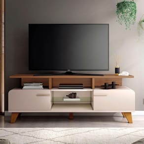 O Rack Bancada de TV 60 Pol 160cm Amago H01 Castanho/Off, da Mpozenato é um móvel com design que combina a modernidade e a sofisticação com o estilo orgânico.
