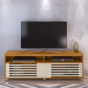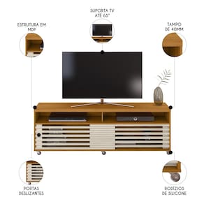 O Rack Bancada de TV 65 Pol 182cm Tery M01 Off White/Cinamomo, da Mpozenato, é a escolha perfeita para quem busca sofisticação e funcionalidade na Sala de Estar.