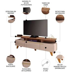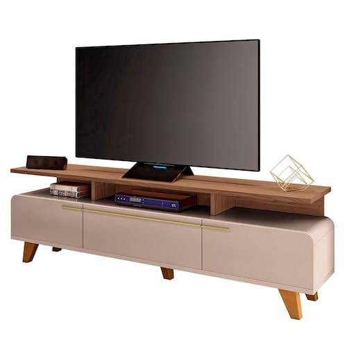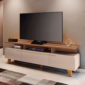 O Rack Bancada de TV 70 Pol 200cm Amago H01 Castanho/Off, da Mpozenato é um móvel com design que combina a modernidade e a sofisticação com o estilo orgânico.