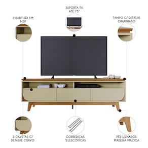 O Rack Bancada de TV 75 Pol 200cm Celina M01 Cumaru/Opala, da Mpozenato, combina design moderno e praticidade para transformar sua Sala de Estar.