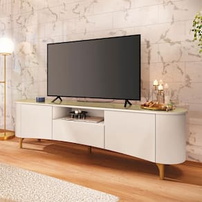 Rack Bancada Elara TV até 80” Polegadas Pés Madeira Maciça - Bege Médio