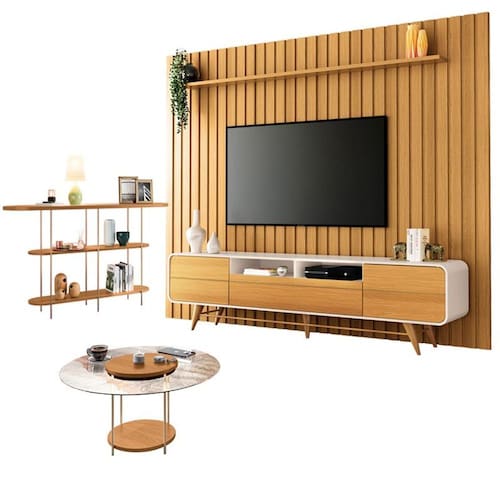 O Rack Bancada Época com o Painel Ripado You e a Mesa de Centro Sky e o Aparador Infinity foram desenvolvidos pela HB Móveis para completar a sua sala de estar! Os móveis mais charmoso e moderno para deixar o ambiente mais sofisticado e aconchegante para aproveitar os momentos em família e com amigos. Confira as características técnicas e aproveite!
