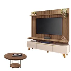 Rack Bancada Essenza e Painel Link com Mesa de Centro Sky Off White Castanho HB Móveis