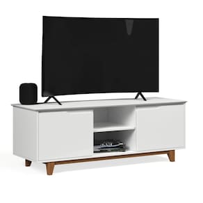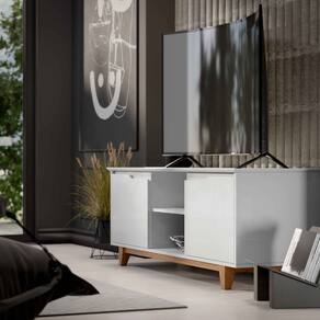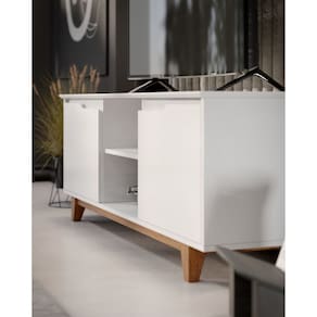 Rack Bancada Flow para Tv 146 cm 2 Portas com Pés de Madeira Branco - Rede Móveis