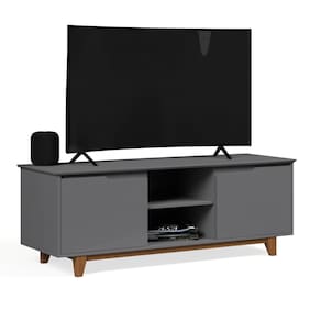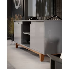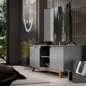 Rack Bancada Flow para Tv 146 cm 2 Portas com Pés de Madeira Cinza - Rede Móveis