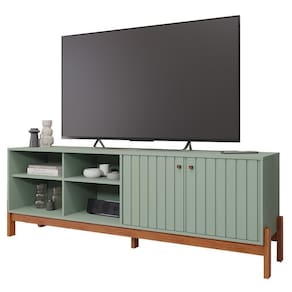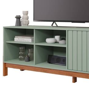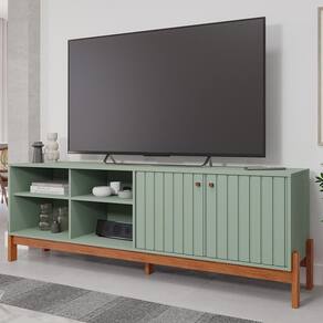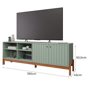 Rack Bancada Holanda 185cm Sálvia/cinamomo Para Até 60 - Permóbili Sálvia/cinamomo Rack Bancada Holanda 185cm para até 60 - Permóbili Transforme sua sala de estar com o Rack Bancada Holanda 185cm. Com 2 portas com dobradiças em slow motion, garantindo um fechamento suave e detalhes em efeito 3D ripado, que adicionam um toque sofisticado ao design. Os puxadores na cor cobre complementam a estética moderna, enquanto os pés em MDF apresentam estabilidade e modernidade. Transforme seu ambiente com funcionalidade e design. ESPECIFICAÇÕES: - Estrutura em MDF - Pintura UV - 2 Portas - Dobradiças slow motion - Detalhe nas portas com efeito 3D ripado - Puxadores na cor cobre - Nichos - Pés em MDF - Ideal para até 60