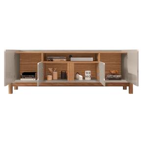O Rack Bancada Lizz 190cm para TV até 60 combina design sofisticado e funcionalidade. Com estrutura em MDP e MDF, ele apresenta acabamento Print Wood e bordas com acabamento Soft P.U, garantindo durabilidade e elegância. As 4 portas em MDF usinadas com detalhe curvo e dobradiças soft-close proporcionam um toque moderno e praticidade. A base e as laterais com cantos arredondados, juntamente com os pés de madeira maciça, completam o visual, tornando-o ideal para TV até 60. É a escolha perfeita para uma sala de estar contemporânea.