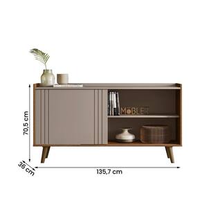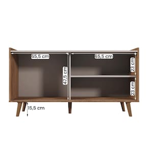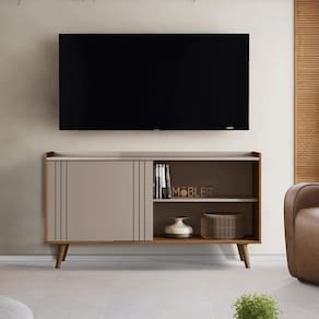 Possui porta de correr com trilho suave, nichos para objetos decorativos e estrutura em MDP/MDF resistente.