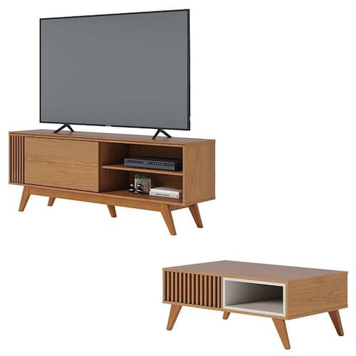Rack Bancada Otawa Freijó com Mesa de Centro Jeri Freijó Off White - Colibri