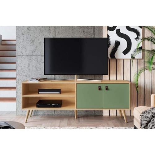 Rack Bancada p/ TV até 50 Pol Amber c/ 2 Portas e 2 Nicho 120cm Savana/Alecrim - Genialflex