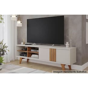 Rack Bancada p/ TV até 60 Pol Paraty c/ 1 Porta e 4 Nichos 180cm Off White/Cinamomo - Permóbili