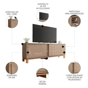 A Bancada para de até 65 polegadas é uma escolha incrível para quem deseja aliar Design Sofisticado e funcionalidade em sua Sala De Estar, ela traz um estilo robusto com acabamentos em cores naturais, proporcionando um ambiente repleto de elegância e requinte. Perfeita para quem busca um item que combine com diferentes estilos, elevando a estética de qualquer espaço.